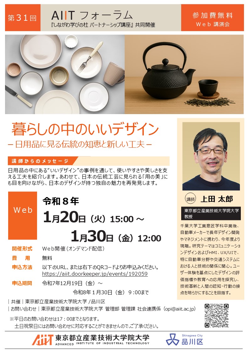 第31回 AIITフォーラム【Web講演会】/『しながわ学びの杜パートナーシップ講座』共同開催