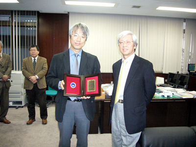 創造技術専攻の橋本洋志教授が、独立行政法人日本学術振興会から平成21年度科学研究費補助金第1段審査委員の表彰を受け、平成21年11月12日に表彰状と記念品が石島学長から贈呈されました。