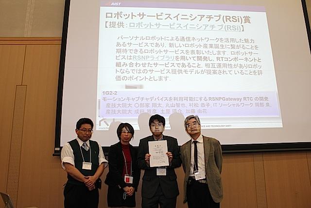 この研究成果が高く評価され、三菱重工業、富士通、東芝、安川電機など大手ロボット開発会社や日本気象協会コンテンツ提供会社などが組織するロボットイニシアティブによるRSi賞を受賞しました。