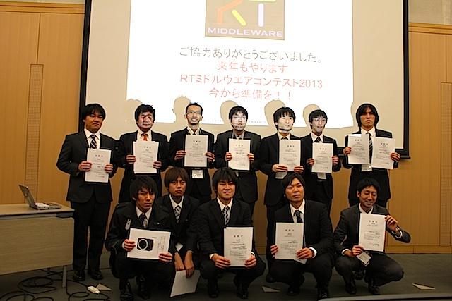 本学の情報アーキテクチャ専攻の成田PBLは、2012年12月18日に福岡国際会議場で開催された第13回 公益社団法人 計測自動制御学会主催の「システムインテグレーション部門 講演会RTミドルウェアコンテスト」でロボットイニシアティブ(RSi)賞を受賞しました。この受賞は、昨年に引き続き2回目となります。