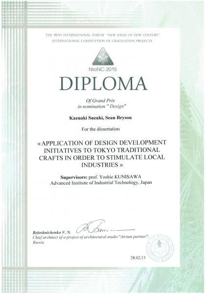 本学の修了生及び在学生が国際科学フォーラム゛New Ideas New Century゛において、大学院修了プロジェクトのデザイン部門コンペテションで大賞を受賞しました。