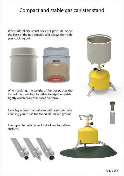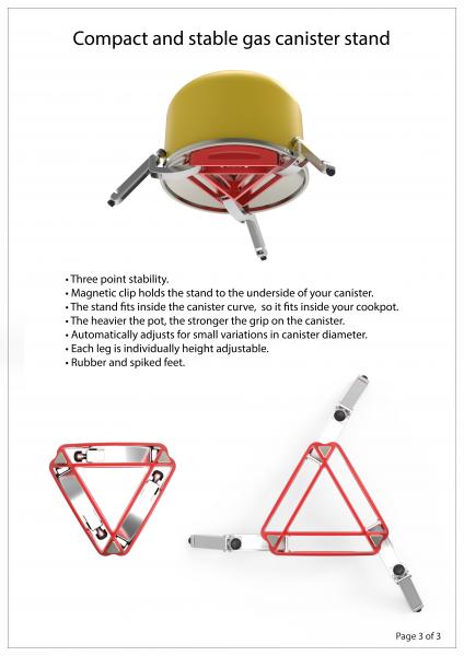 Bryson氏が受賞した作品は、「金属性ガス缶に使用する、コンパクトで安定性のあるスタンド」です。(写真御参照)