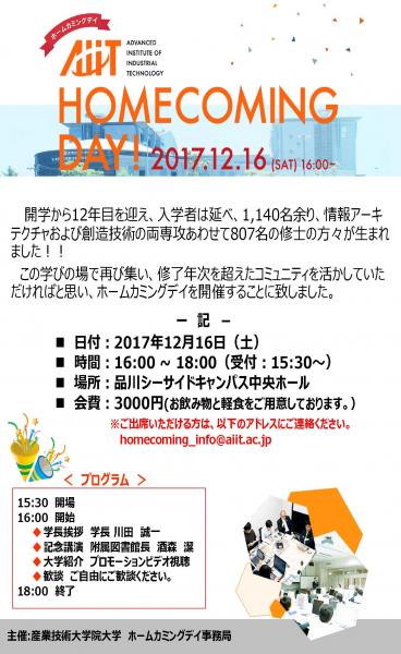 お問い合わせ:homecoming_info[at]aiit.ac.jp