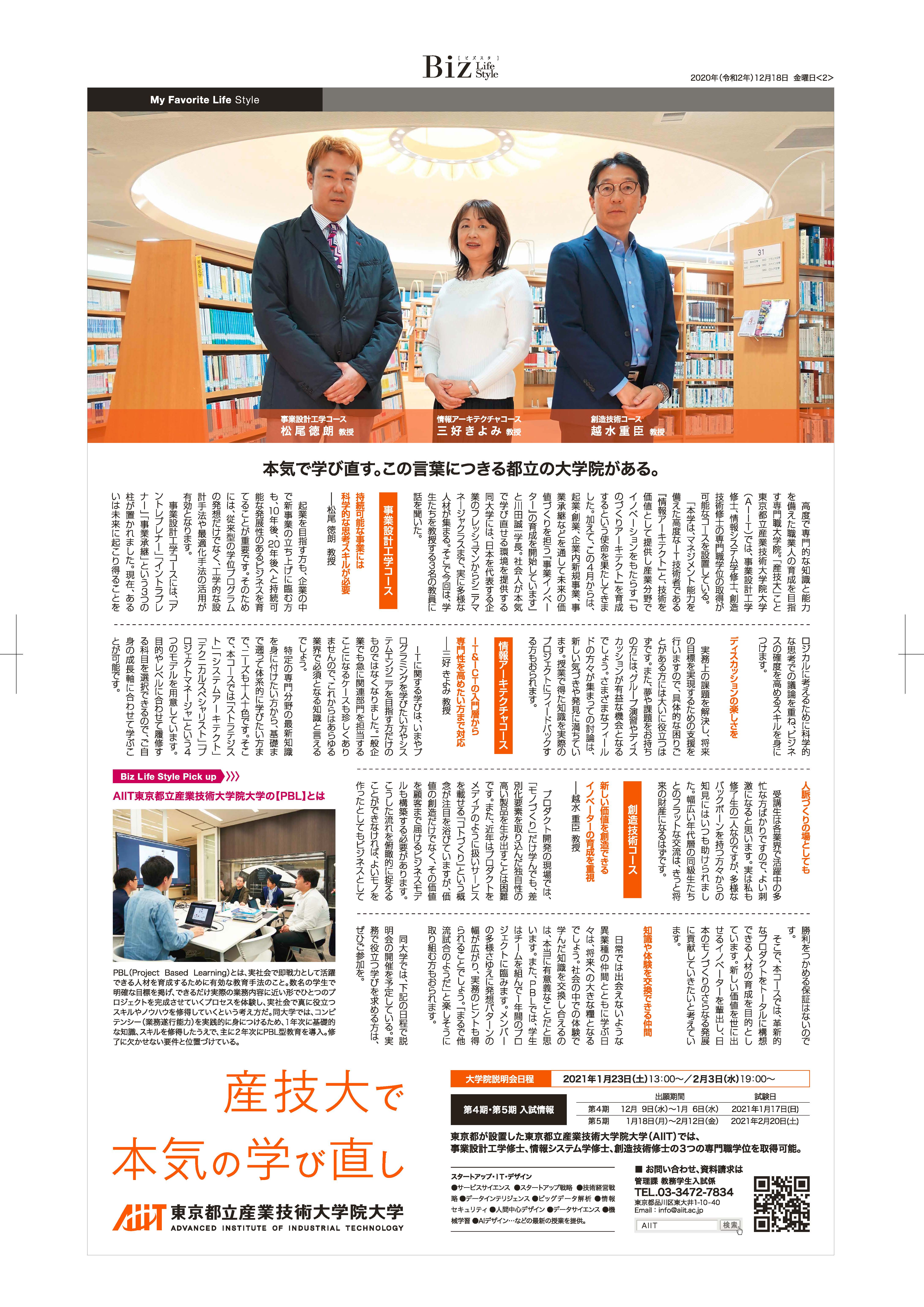 12月18日(金)発刊のBiz Life Styleに本学の教員3名のインタビュー記事を掲載いたしました。