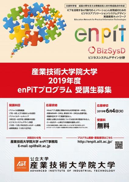 第2期enPiTプログラム 2019年度受講生を募集中です。(応募締切:6月4日/対象者:学部3~4年生・高専本科4~5年生・高専専攻科1~2年生)