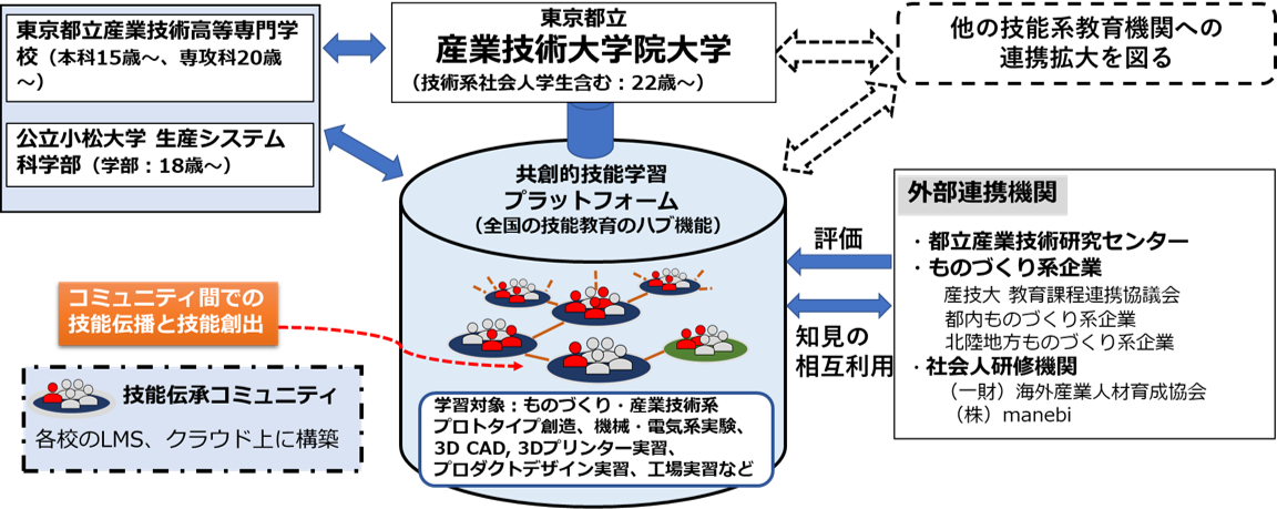 本事業により、東京都立産業技術高等専門学校や他大学等と連携し、技能実習の効率的な遠隔教育方法を開拓するため、授業コンテンツの効果的なデジタル化や他機関との相互参照を行えるプラットフォームの構築を進めていきます。