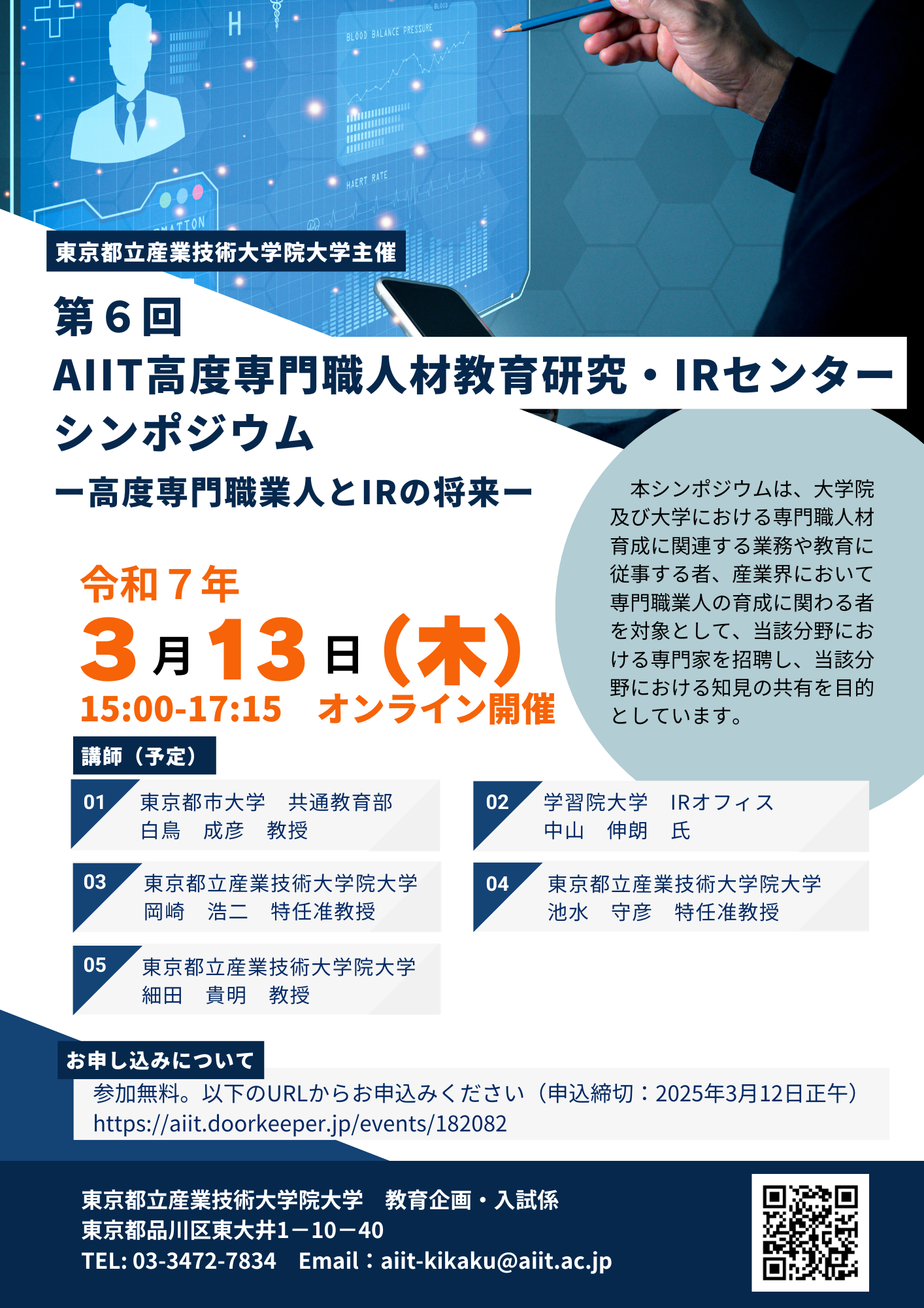 「第6回AIIT高度専門職人材教育研究・IRセンターシンポジウム ~高度専門職業人とIRの将来~」
