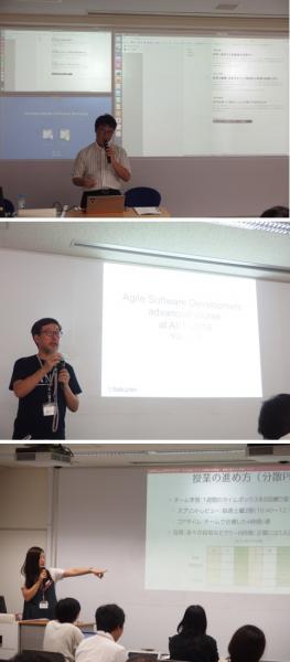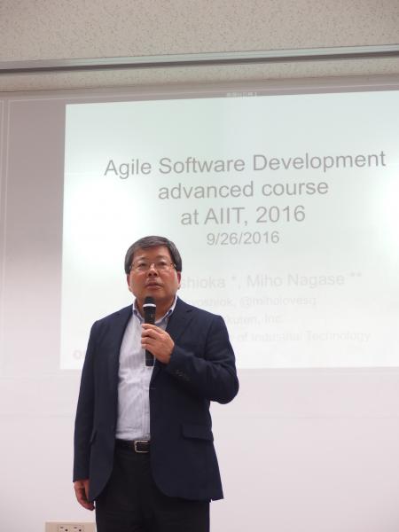 合宿第2週目の講義は、永瀬特任准教授及び吉岡客員教授(楽天株式会社 技術理事)による「アジャイル開発手法特論」でした。本特論では、アジャイルソフトウェア開発手法の一つであるスクラムを中心に、アジリティの高いソフトウェア開発を行うためのモダンなチーム開発についての基礎知識を習得することを目標に、アジャイルなプロダクト開発の立ち上げをチーム演習形式で体得しました。