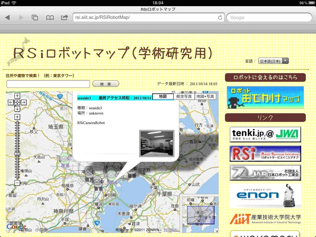 このために、2009年より加藤教授、土屋助教と協力し、ロボットサービスの集積のために研究者向けのサイトを開発と公開を行い、マイクロサービス技術を開発し、容易にRSNPを体験できるようにiPhoneアプリケーション RSiCameraRobotを開発しAppStoreで公開している。また、加藤教授のPBLで開発した大型ロボットのアプリケーションを小型ロボットで試作できるというコンセプトデモと共に、2011年11月に開催された2011国際ロボット展でRSiブースにて展示した。また、計測学会主催のRTMコンテストにPBLとして参加している(コンテストサイト: http://www.openrtm.org/openrtm/en/node/4580 )。