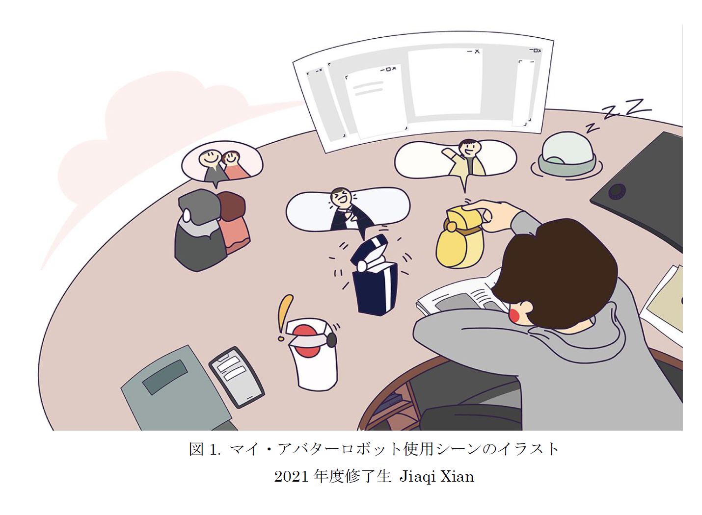 本学では修士号を取得するための必修科目として、PBL(Project Based Learning)演習科目が課されますが、私のプロジェクトでは、2016年から「人との豊かな共生を目指すパートナーロボット」をテーマとして、社会人学生を含む多様なメンバーで取組んでおります。昨年2021年度は『口元のしぐさで「あなたと私」の想いをつなぐマイ・アバターロボット』にチャレンジしました [3]。