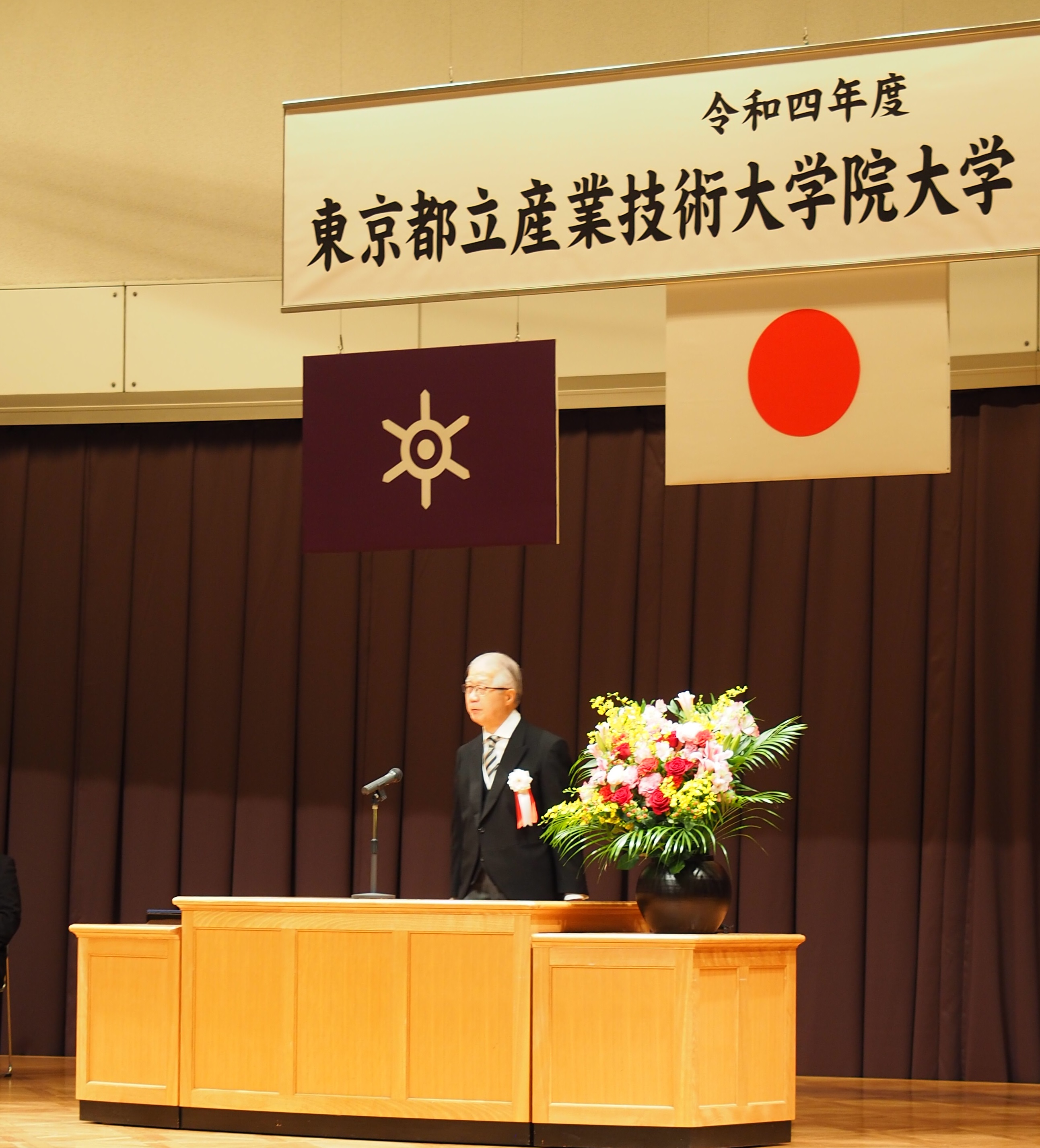 東京都公立大学法人は、気候危機など地球規模の課題から私達が暮らす大都市「東京」が抱える課題など、様々な問題の解決に向けて全力で取り組み、持続可能な社会の実現に貢献してまいります。皆さんは東京都立産業技術大学院大学で学んだことに自信と誇りを持って、自らも努力しながら、大学で得た知識や経験を存分に発揮し、私たちの住む地球が直面しているあらゆる課題解決に挑戦し、広く社会に貢献され、さらに、皆さんがその先頭に立ってくれることを期待しています。